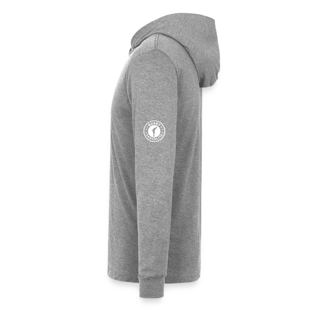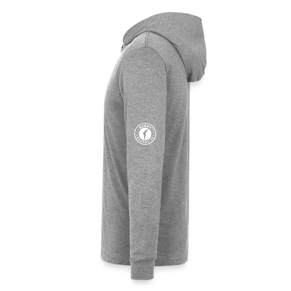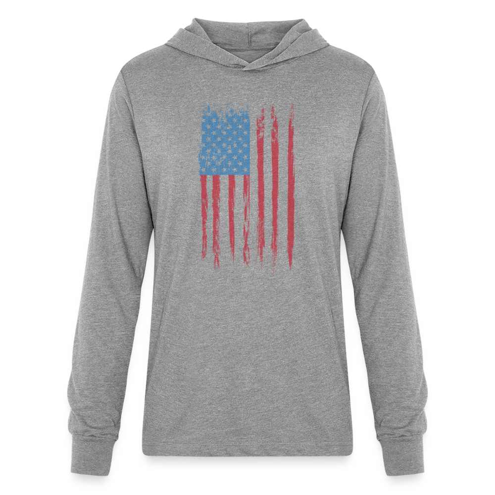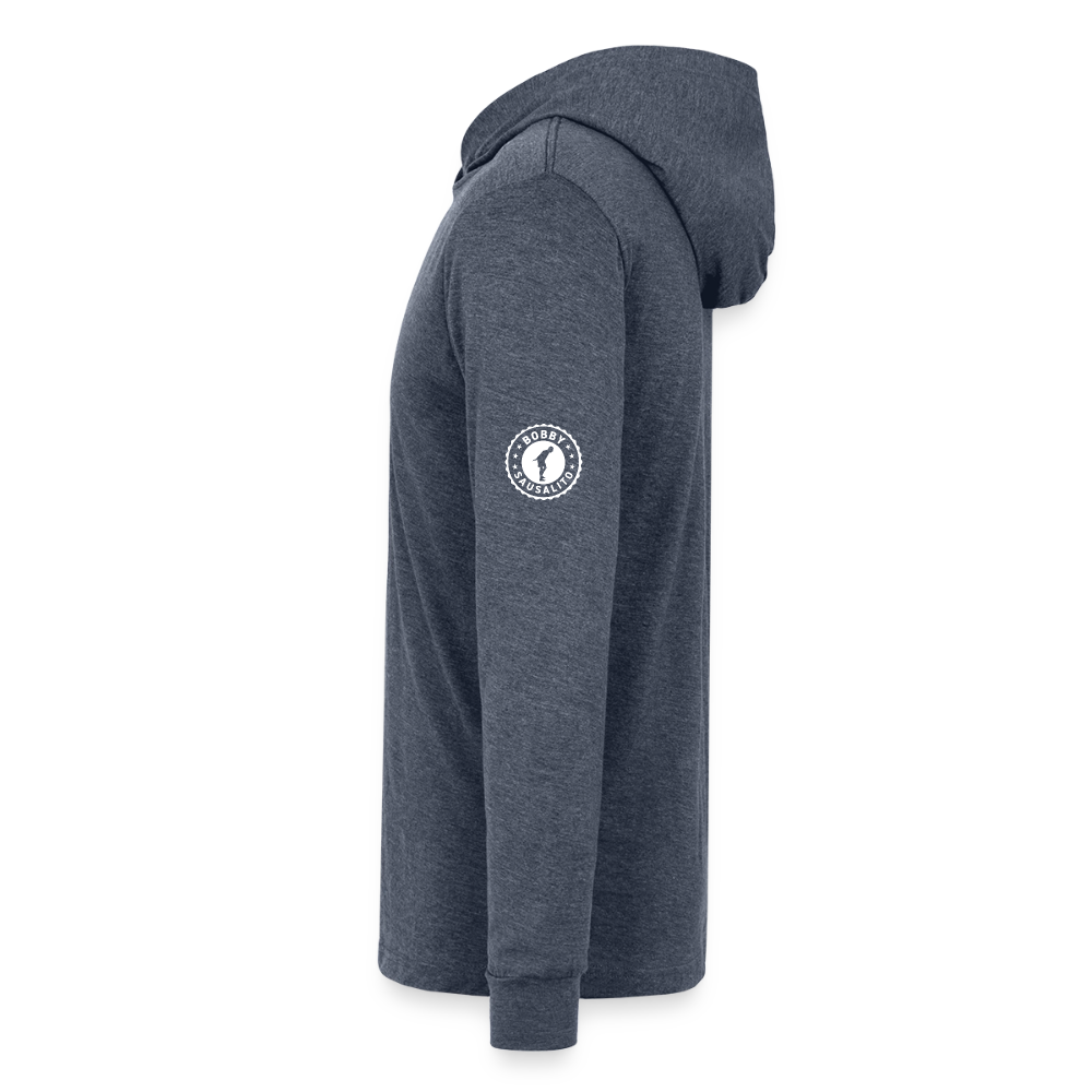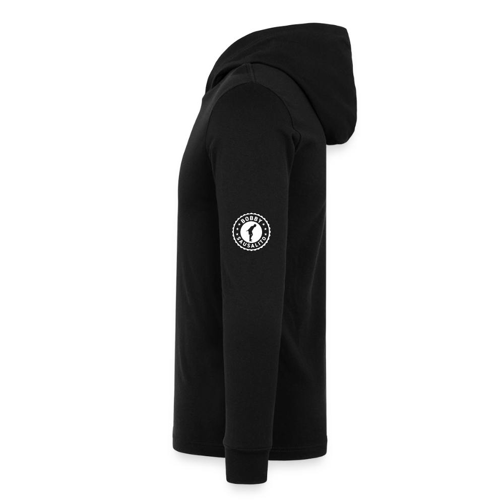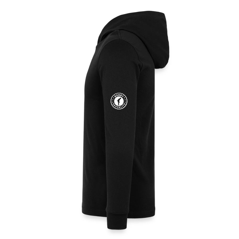This classic unisex jersey long-sleeve hoodie is great for year-round layering and features a retail fit, crossover V at neckline, hood, and cuffs. Available in a variety of fabrics and contrast sleeve color options.